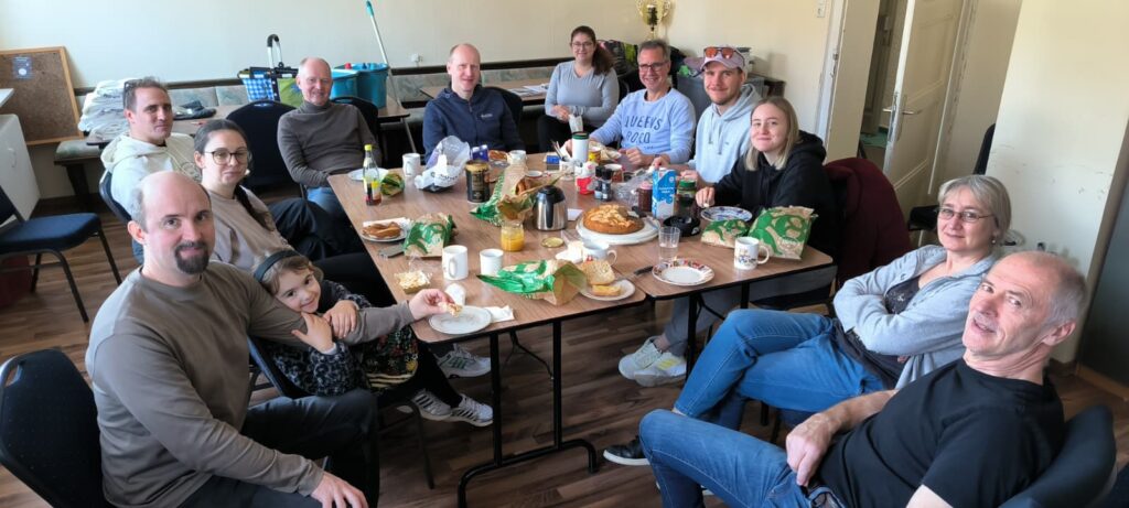 Wie in den vorherigen Jahren gab es auch in diesem Jahr den Hilferuf unseres Clubheims, da es sich mit dem Virus „Schmutzus vielus überallus“ infiziert hatte. Diesem Aufruf folgten einige Mitglieder, um sich gemeinschaftlich der Sauberkeit im Clubheim zu Widmen. Dabei stand vor allem die Geselligkeit im Mittelpunkt. So Begann die Aktion am Sonntag, den 22.03.2026 mit einem ausgiebigen Frühstück. Währenddessen gab es erste hitzige Diskussionen hinsichtlich der Aufgabenverteilung. Frisch gestärkt ging es sodann ans Werk. Reinigungsmittel waren in ausreichender Menge vorhanden. Nachdem sich Jürgen, Claudia, Sabrina, Felix, Jule, Marcel, Fabian, Matthias M., Matthias K., Justus, Ralph, Alex, Leni, Michael und Patrick jeweils ihr passendes Mittelchen ausgesucht hatten, wurden unter anderem Fenster gewischt, Spinnweben entfernt, Küchenschränke ausgemistet, der Ofen gereinigt, die Toilette geschrubbt, die Wall of Fame von Staub befreit, Leergut sortiert, Tische gewischt, Geschirr gespült und selbstverständlich auch alle Böden gewischt.